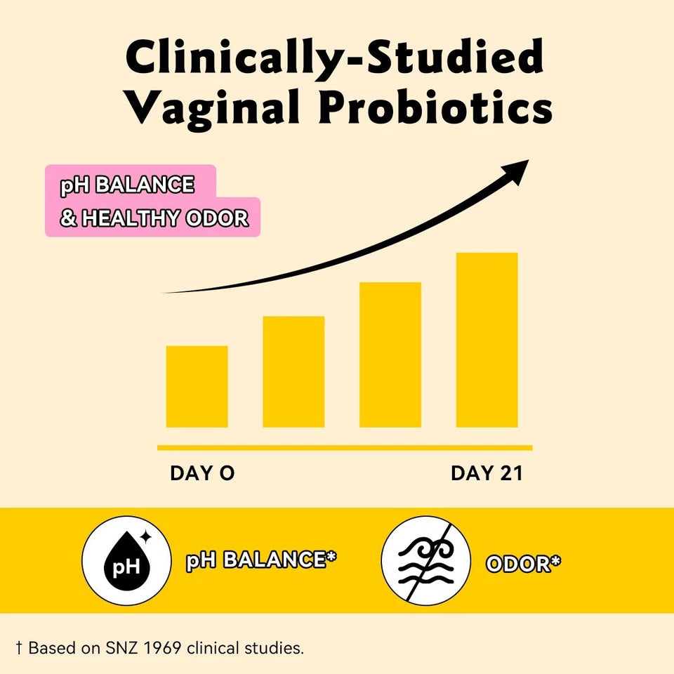 Clinically tested probiotic shown to improve vaginalhealth, pH balance, and odor.